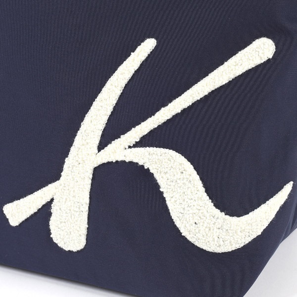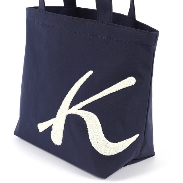 フロントにあしらったサガラ刺繍のKマークが印象的なハンドバッグ。パイル状のふわふわとした立体的な質感が特長です。本体はポリエステル素材を使用しており、軽量なのも嬉しいポイント。長財布や折りたたみ傘がゆったり入るサイズ感で、メインバッグはもちろん、サブバッグにもおすすめ。口元はファスナーでしっかり閉じることができ、安心してお使いいただけます。