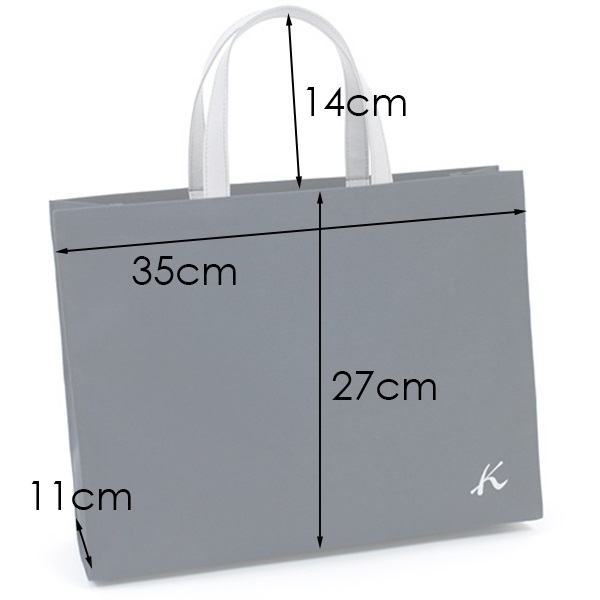 使い勝手の良さで人気のショッピングバッグ。ポリエステル素材を使用し、コンビカラーで優しい印象に仕上げました。A4バインダーが横にぴったり入るサイズです。底板付きなので、重さがある書類も安心して持ち運べます。