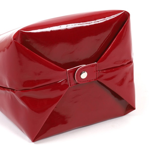 シンプルなデザインと使い勝手の良さで人気のショッピングバッグ。口元はファスナーでしっかり閉じることができます。底部のホックを外すと薄マチのバッグとしても使える2wayタイプ。ホックを外した状態で、A4バインダーが横にぴったり入ります。ビニール素材なので、水滴や軽い汚れの拭き取りができるのもポイントです。