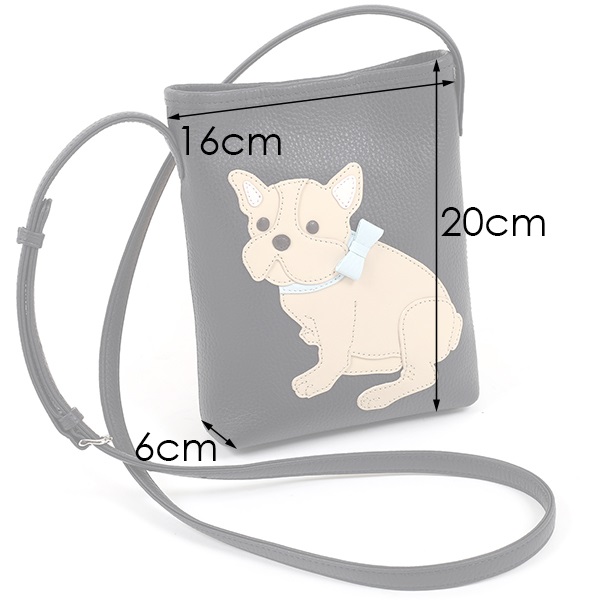 1つ持っておくと便利な、コンパクトなサイズのショルダーバッグ。スマホやお財布、鍵など、荷物をコンパクトに持ち歩きたいときにおすすめです。フレンチブルのモチーフが愛らしく、愛犬とのお散歩シーンで使えば、いつものお散歩がより楽しくなりそうなデザインです。