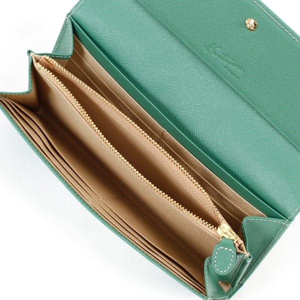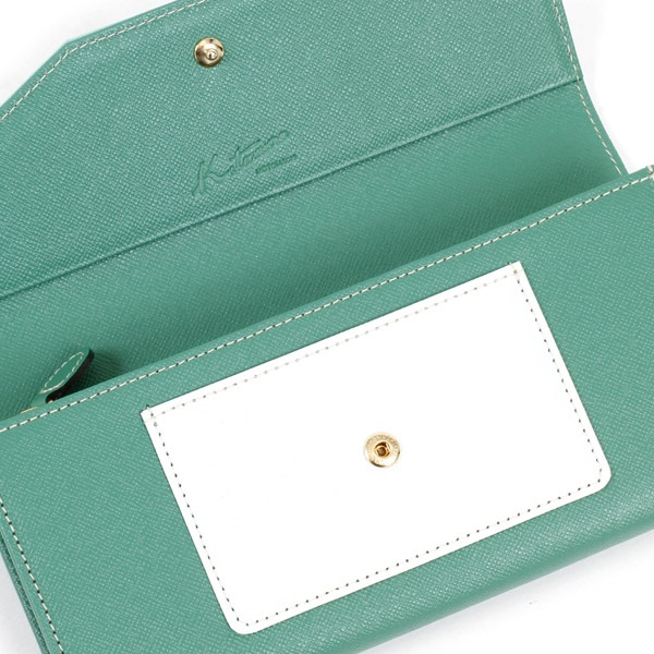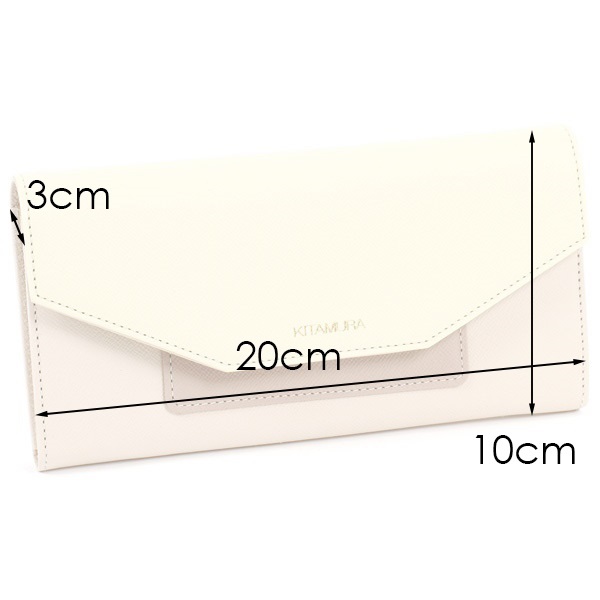 3色のマルチカラーがポイントの長財布。かぶせに箔押しのKITAMURAロゴをあしらいました。シンプルな内装ですが、カード段も充実。前側には定期券など使用頻度の高いカードを入れるのに便利なカードポケット付き。型押しの牛革を使用しているので、キズが目立ちにくいのも嬉しいポイントです。