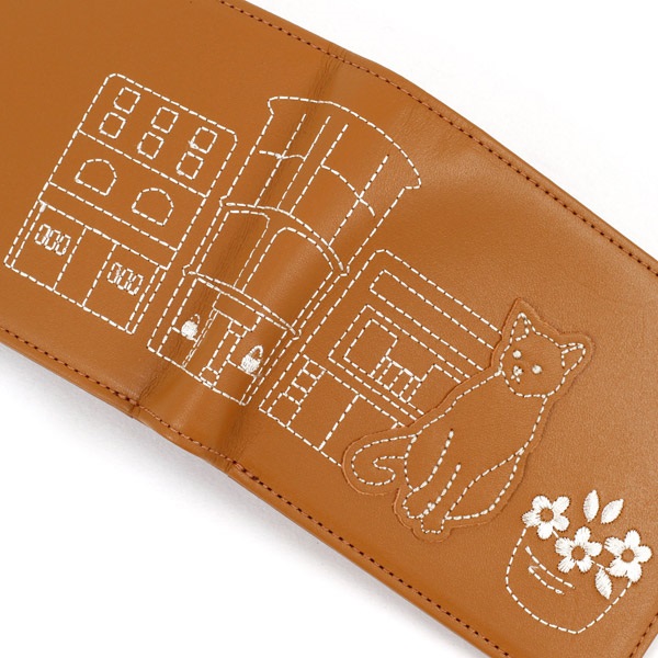 横浜元町を背景に、ワンちゃん・ネコちゃんの姿をパッチで立体的に表現した二折財布。本体カラーごとにパッチのデザインが異なります。シンプルな見開きタイプで、開くと元町柄が広がるデザイン。色使いを抑えた刺繍で、大人な印象のモチーフ財布に仕上げました。