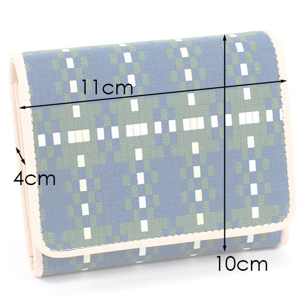 細やかなメッシュ風プリントのキャンバス生地を使用した二折財布。縁取りや内装にはヌメ革を使用しており、使うほどに色の深みが増していく経年変化が楽しめます。小ぶりながら、カード段や内ポケットなど収納スペースが充実。小銭入れは大きく開いて見やすいL字ファスナータイプです。