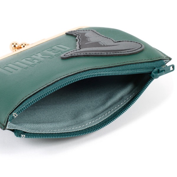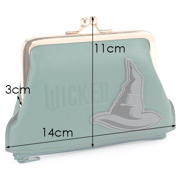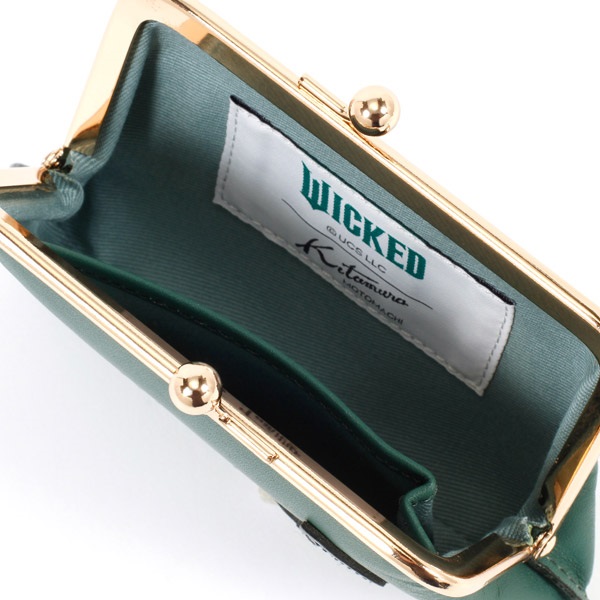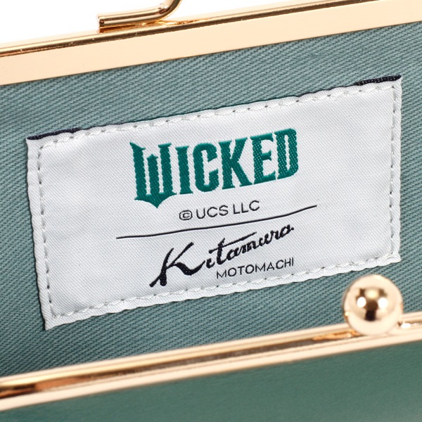 映画『ウィキッド 永遠の約束』の「エルファバ」をイメージした、がま口タイプの小銭入れ。本体に「WICKED」ロゴを素押しで入れ、帽子の革パッチをあしらいました。がま口の中に内ポケットも付いており、片方には小銭、もう片方にはお札とカードなど、整理整頓できるのが嬉しいポイント。ミニバッグでお出かけする際のお財布としてもおすすめです。
