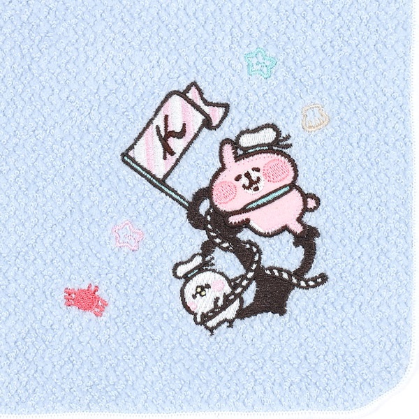 「カナヘイの小動物」とコラボレーションしたタオルハンカチ。「ピスケ&うさぎ」が水兵さんの帽子をかぶり、Kマークの旗をかかげたオリジナルイラストを刺繍であしらいました。港町・横浜を思わせるマリンテイストなデザインです。