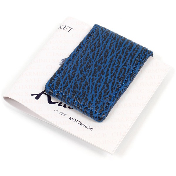 独特の水シボ模様が美しいシャークレザーを贅沢に使用したマネークリップ。使い込むほど自然な光沢が増し、手に馴染んで個性的な風合いが生まれます。筋繊維が密集しているため耐久性が高く、キズが目立ちにくいのも特長。ミニサイズの小銭入れと合わせて持つと、スマートに使い分けできます。内側はシンプルなスムース牛革を使用しています。