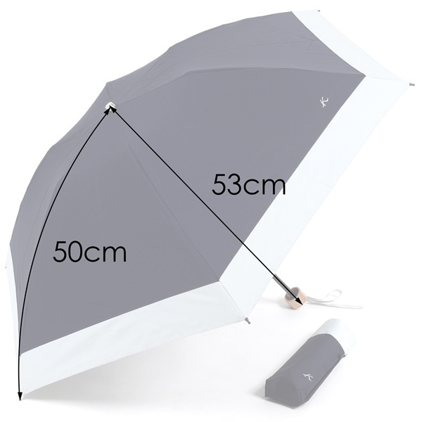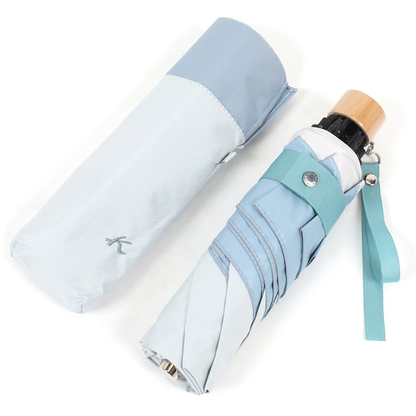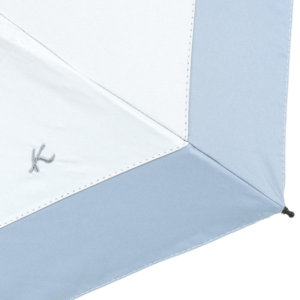 カラーコンビの折りたたみ晴雨兼用 日傘。上品で優しいパステル調カラーと、オールシーズン使いやすいダークブルーカラーをご用意しています。シンプルなデザインに、Kマーク刺繍がワンポイント。持ち手にグログランテープをあしらい、可愛らしさをプラスしました。