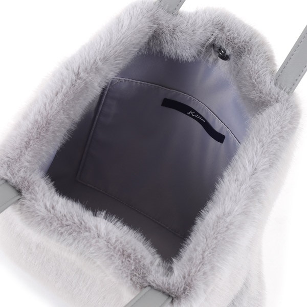 秋冬シーズンを盛り上げるフェイクファー素材の縦型セミショルダーバッグ。前面にあしらったKマークがワンポイントです。A4が縦にゆったり入る少し大きめのサイズ感ですが、薄マチですっきりとした印象です。内側にポケットが付いており、小物の収納に便利です。