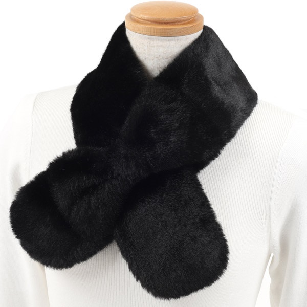 通し穴になっているリボンがポイントのファーティペット。リボンの裏にはマグネットが付いており、ずれる心配がなく、着脱もスムーズです。やや毛足が長く厚みのあるフェイクミンクはエレガントな印象で、コーディネートのワンポイントにおすすめです。