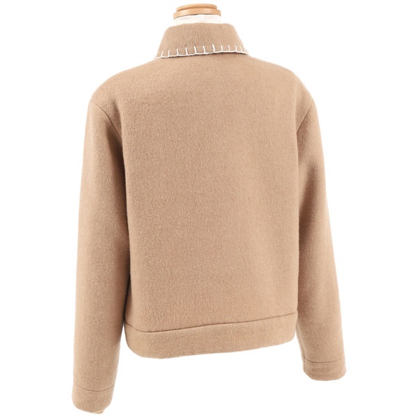 上質なウール素材を使用したショートジャケット。素材のやわらかさを活かした裏地のないデザインで、外側と内側のカラーコンビもお楽しみいただけます。ドロップショルダーに、襟付きのボタンダウンデザインで、こなれ感のあるカジュアルな印象に仕上げました。襟は丸みのある型で、可愛らしさもプラス。襟には合皮のベルトをあしらい、さり気ないアクセントに。両サイドにポケットが付いているのも嬉しいポイントです。同素材を使用したスカート(KH0802)とのセットアップはもちろん、デニム等お持ちのアイテムとのコーディネートもおすすめです。