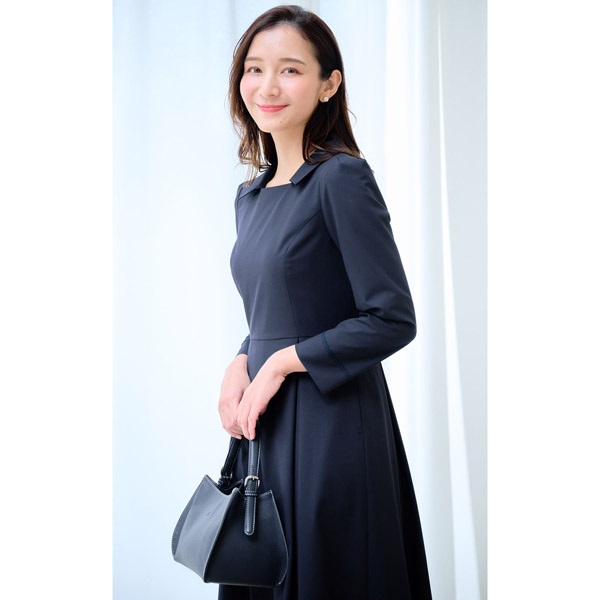 • 襟付き長袖ワンピース(ダークブルー-S(36))