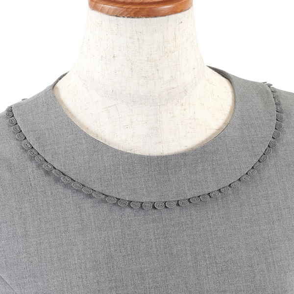 レース付き五分袖セミフレアワンピース(グレー-S(36))