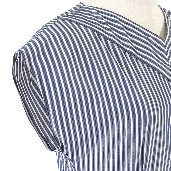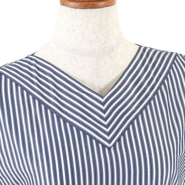 • ドビーストライプVネックワンピース(ダークブルー-S(36))