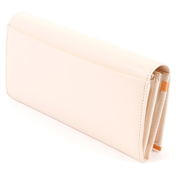 ツヤとハリのある牛革でお作りした長財布。すっきりとしたフォルムが上品な印象です。「KITAMURA MOTOMACHI」の文字に囲まれたKマークの飾りがポイント。かぶせの下と、カード段の一部にアクセントカラーをプラスしました。カード段やポケットなど収納スペースが充実しており、小銭入れは大きく開くL字タイプです。