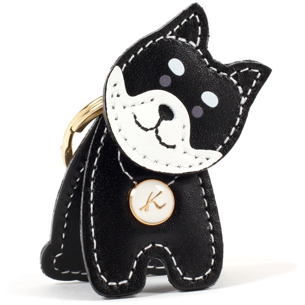 柴犬をモチーフにしたキーホルダー。ピンと立った立ち耳やクルンとした巻き尾など、愛らしい姿を革で表現しました。目の上の斑の形によって印象が異なる2種類をご用意しています。首もとにあしらったKマークの飾りがワンポイント。立たせたり顔を動かしたりできる、遊び心あふれる楽しいデザインも魅力です。ご自分用はもちろん、犬好きの方へのギフトにもおすすめです。