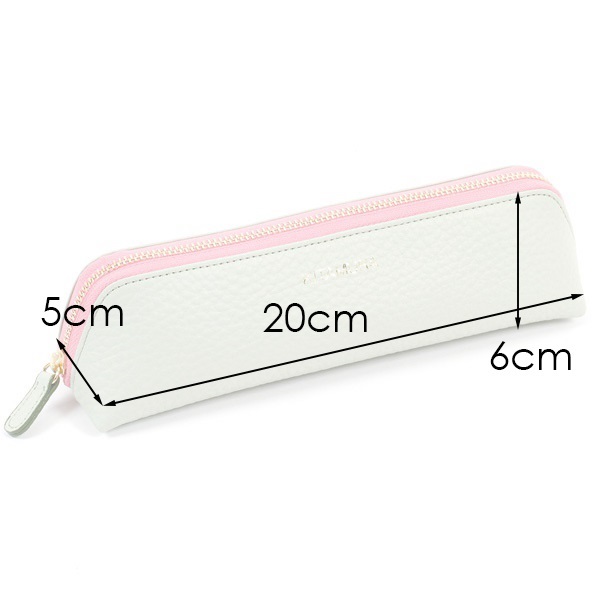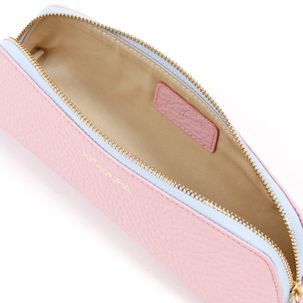 本体とファスナーテープのカラーコンビがポイントのペンケース。カラーコンビが映えるシンプルなデザインで、前面には箔押しのKITAMURAロゴをあしらいました。持ち歩くのにぴったりな、コンパクトなサイズ感です。