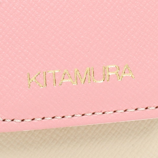 3色のマルチカラーがポイントの二折財布。かぶせに箔押しのKITAMURAロゴをあしらいました。マチがスリムで持ち歩きしやすいコンパクトなつくりです。小銭入れ部分には定期券など使用頻度の高いカードを入れるのに便利なカードポケット付き。素材にはキズが目立ちにくい型押しの牛革を使用しています。