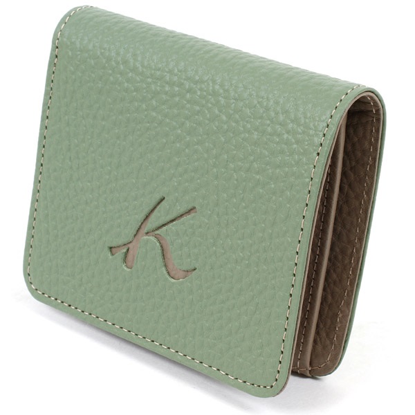 Kマークの抜き型が印象的な二折財布。シボ感が特徴のソフトなシュリンク牛革を使用しており、優しい手触りと、キズが目立ちにくいのがポイントです。手のひらに収まる大きすぎないサイズ感で、お札入れ部分は整理整頓に便利な仕切り付き。中身の見やすいボックスタイプの小銭入れは、お会計の際もスムーズに出し入れしていただけます。