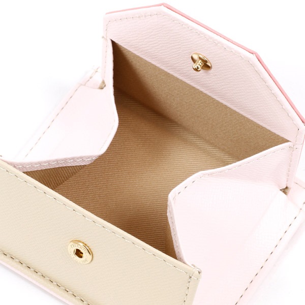 3色のマルチカラーがポイントの小銭入れ。かぶせに箔押しのKITAMURAロゴをあしらいました。お札を半分に畳めば中央のポケットに収納でき、コンパクトなお財布としてもおすすめ。素材にはキズが目立ちにくい型押しの牛革を使用しています。