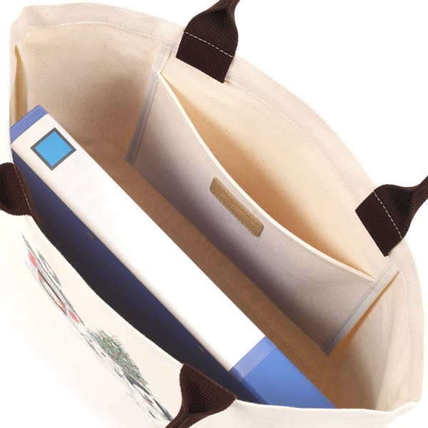 キタムラオリジナルカレンダーのイラストをプリントしたトートバッグ。12ヵ月の絵柄がシーズンごとに登場します。持ち手は付け根からつまんで縫い合わせ、肩に掛けたり持ちやすいよう丸紐に仕上げました。A4バインダーがゆったり入るサイズ感で、お買い物や荷物が多い日のサブバッグにぴったり。内側には長財布が収納できる吊りポケットが付いています。ポケットにはキタムラロゴ入りの牛革タグをあしらいました。