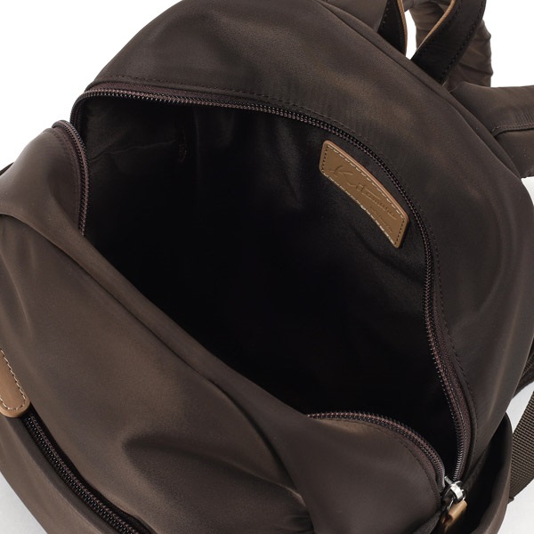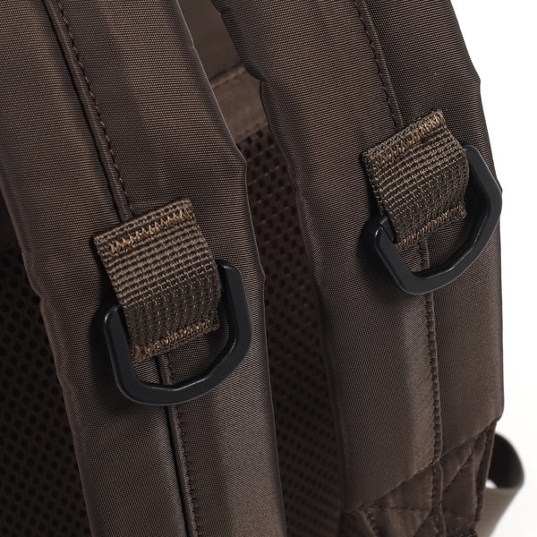 ハリのあるナイロン素材を使用した小ぶりなリュック。前ポケットのK刺繍がワンポイントになっています。背中にはメッシュ素材のクッションを使用しており、背負ったときの当たりがやわらかで、暑い時期も蒸れずに快適。ショルダー部分が太くしっかりしているので、肩に負担なく体に優しいのも特徴です。ショルダーベルトのDカンには、ポーチやドリンクホルダー、リールホルダーなど色々なものを取り付けてマルチにお使いいただけます。