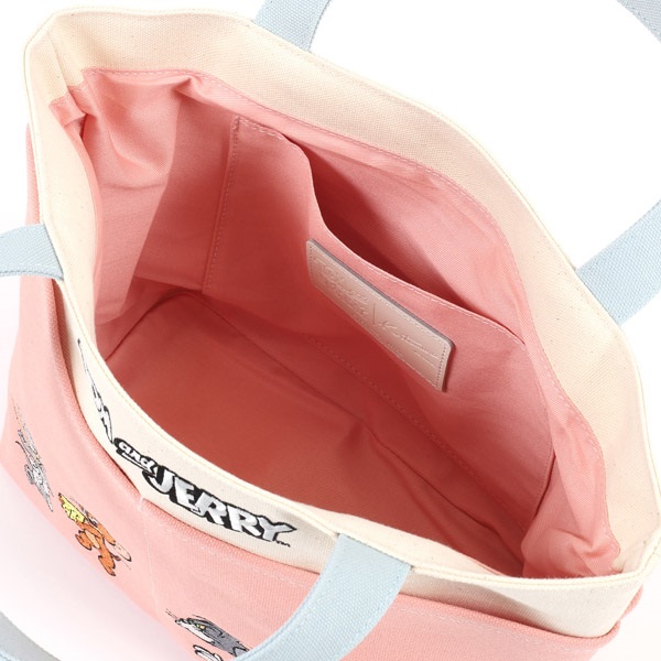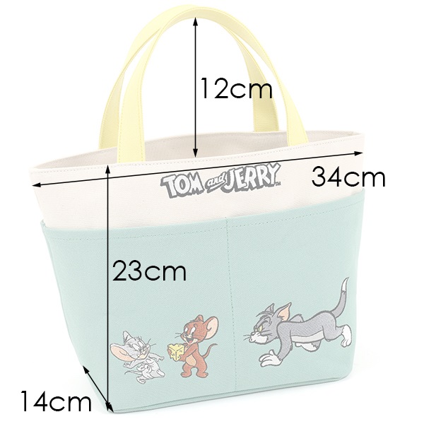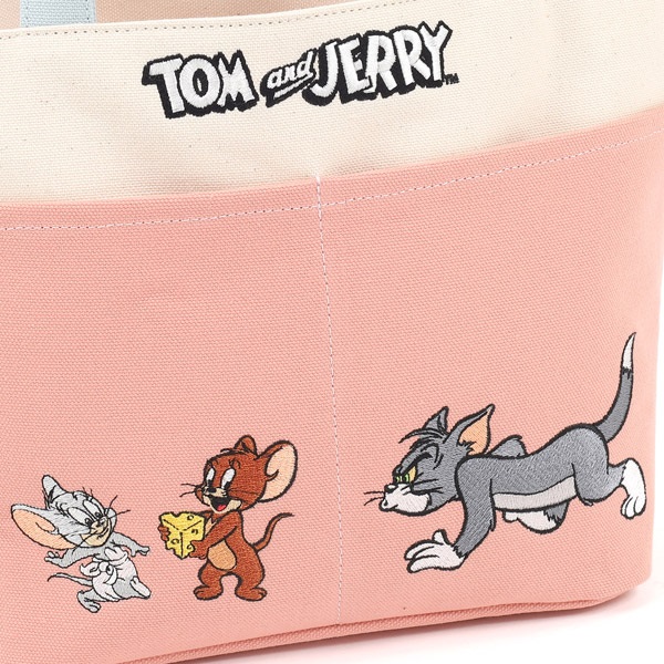 カラーコンビネーションがポップでかわいいキャンバス生地トートバッグ。チーズに夢中なジェリーとタフィー、そんなふたりにトムがそーっと忍び寄り・・・追いかけっこが始まる直前の、表情豊かなキャラクターの姿を刺繍で贅沢にあしらいました。しっかりとした厚手のキャンバス生地を使用しており、底板付きで自立するのも嬉しいポイント。裏面にはシンプルなKマークの刺繍が入っており、どちらを表にしてもお持ちいただけます。
