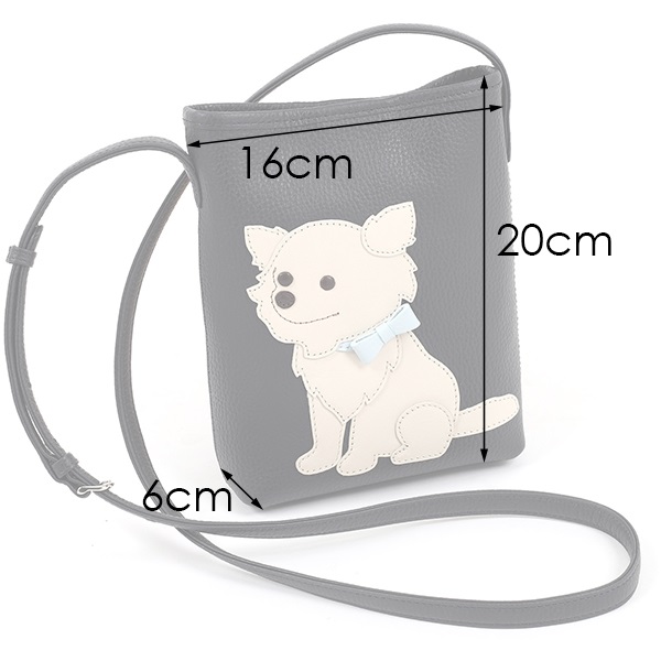 1つ持っておくと便利な、コンパクトなサイズのショルダーバッグ。スマホやお財布、鍵など、荷物をコンパクトに持ち歩きたいときにおすすめです。チワワのモチーフが愛らしく、愛犬とのお散歩シーンで使えば、いつものお散歩がより楽しくなりそうなデザインです。