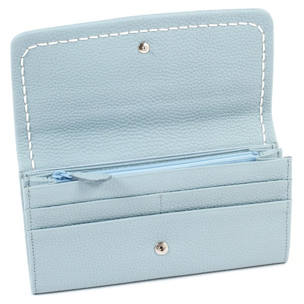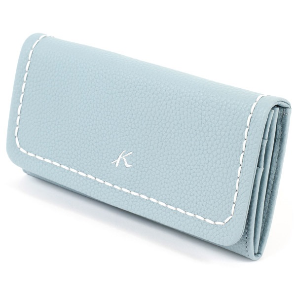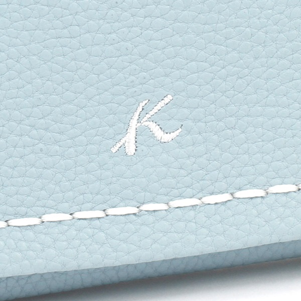 シボ感となめらかな手触りが特徴のシュリンクレザーを使用したかぶせ型長財布。目の大きいステッチの縁取りと、刺繍のKマークがアクセントになっています。すっきりとした内装で、コンパクトに持ち運びできます。