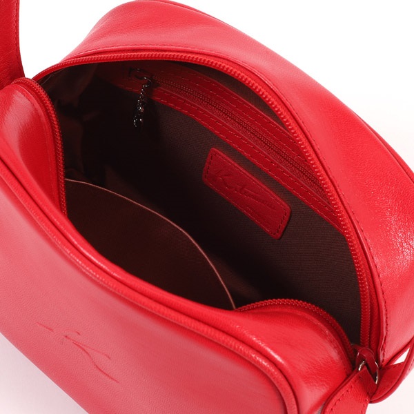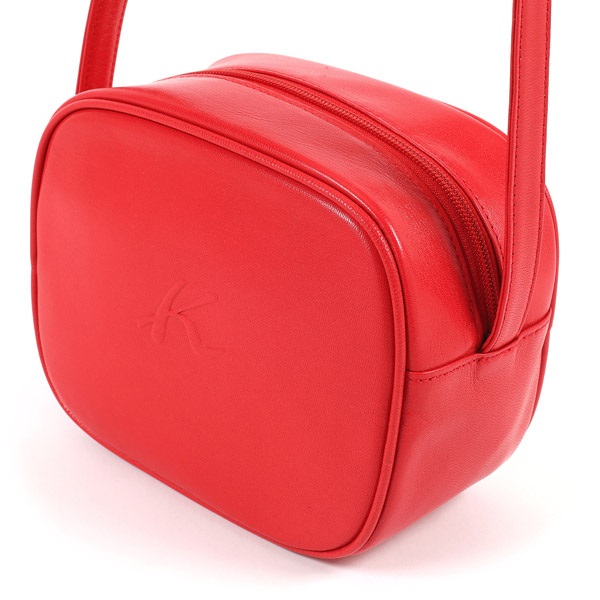 軽くて丈夫な山羊革でお作りしたショルダーバッグ。きめ細かな美しいシボが特徴で、見た目が美しいだけでなく、キズが目立ちにくいメリットもあります。厚みのあるころんとしたスクエアフォルムが可愛らしいデザイン。Kマークは主張しすぎない浮き出し素押しで表現しています。