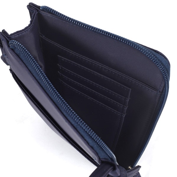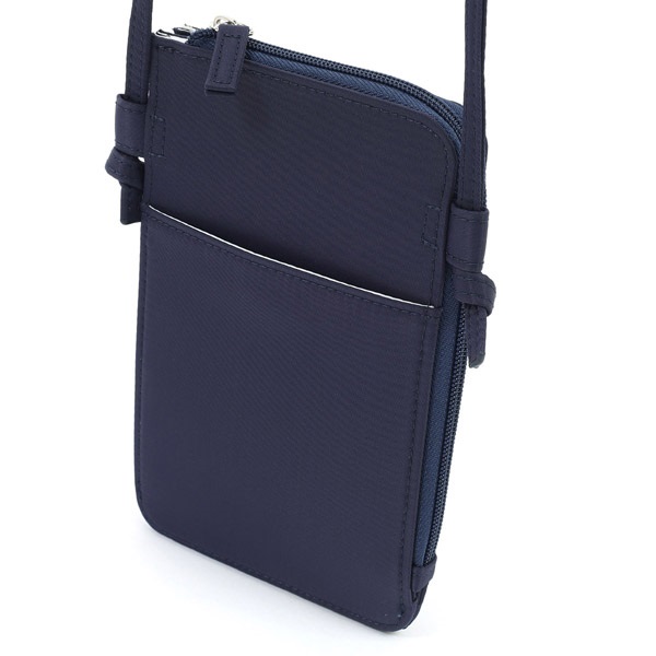 収納スペースが充実したコンパクトなスマホショルダーバッグ。軽量でハリ感のあるナイロン素材を使用しています。口元はL字ファスナーで出し入れしやすく、ポケットは外側に2つ、内側はポケット2つとカード段が付いています。スマホ以外にもパスポートやカードも収納でき、普段使いはもちろん、トラベルシーンにもおすすめです。