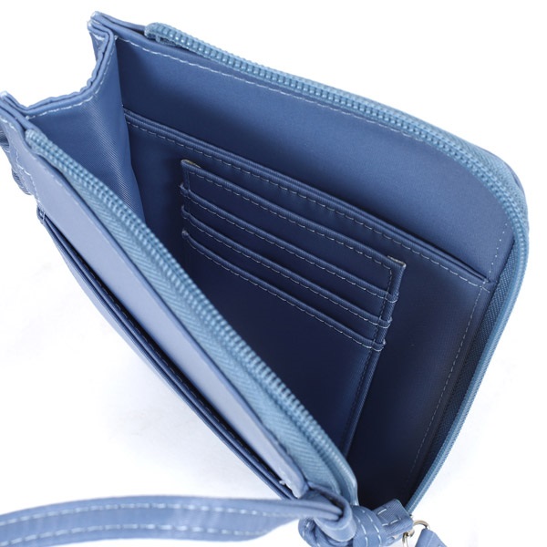収納スペースが充実したコンパクトなスマホショルダーバッグ。軽量でハリ感のあるナイロン素材を使用しています。口元はL字ファスナーで出し入れしやすく、ポケットは外側に2つ、内側はポケット2つとカード段が付いています。スマホ以外にもパスポートやカードも収納でき、普段使いはもちろん、トラベルシーンにもおすすめです。
