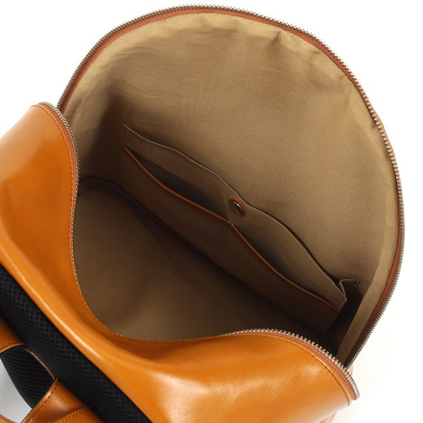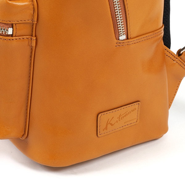 A4サイズ対応の牛革製リュック。A4バインダーが縦にぴったり入るサイズ感で、普段使いにもビジネスシーンにもおすすめです。革の質感を活かした、上品でシンプルなデザイン。背中に当たる部分はクッション性と通気性を兼ね備えたポリエステルメッシュを使用しています。ショルダーベルトは長さ調整も可能。横マチにKitamuraロゴ素押しのパッチをさり気なくあしらいました。