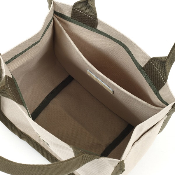 スクエア型のシンプルなトートバッグ。両サイドの外ポケットは、スマホや鍵などすぐ取り出したいものの収納に便利です。マチがしっかりあり、収納力も抜群。キャンバス素材で軽く、デイリーに気軽にお使いいただけます。