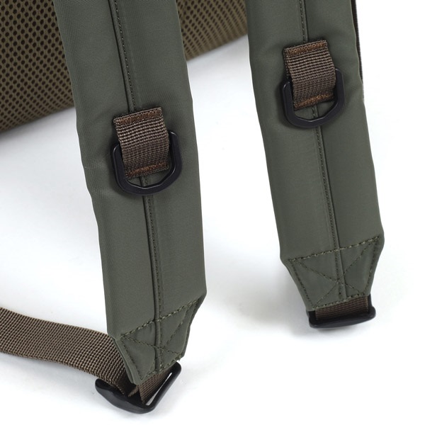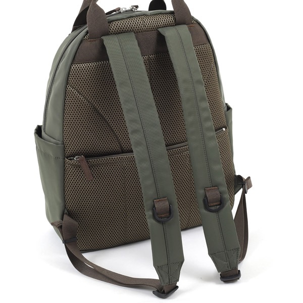 キタムラロゴ刺繍の織りネームがワンポイントのA4サイズ対応リュック。背中に触れる面は、ソフトで肌触りが良く通気性に優れたメッシュ素材を使用しています。ショルダーベルト部分は肩の負担軽減のためクッションを入れています。前後左右それぞれにポケットが付いており、収納スペースも充実。両サイドのポケットには500mlペットボトルが入ります。シンプルなデザインなので、男女兼用でお使いいただけます。