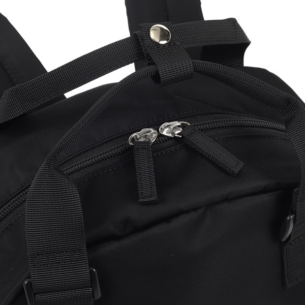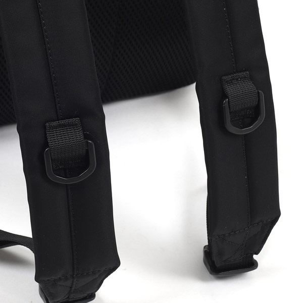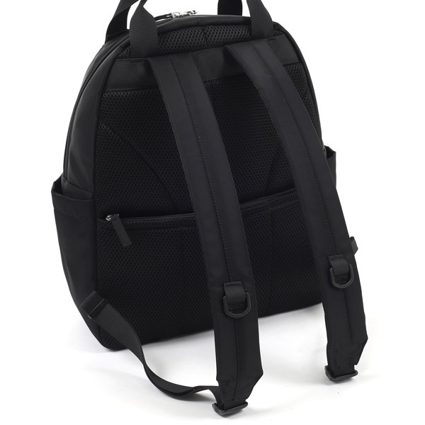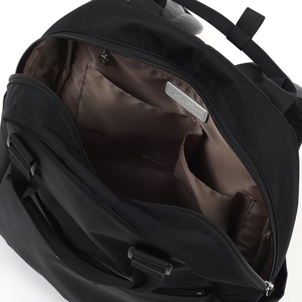 キタムラロゴ刺繍の織りネームがワンポイントのA4サイズ対応リュック。背中に触れる面は、ソフトで肌触りが良く通気性に優れたメッシュ素材を使用しています。ショルダーベルト部分は肩の負担軽減のためクッションを入れています。前後左右それぞれにポケットが付いており、収納スペースも充実。両サイドのポケットには500mlペットボトルが入ります。シンプルなデザインなので、男女兼用でお使いいただけます。