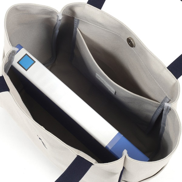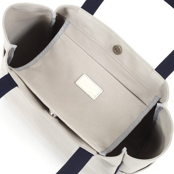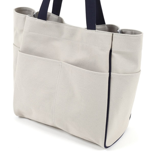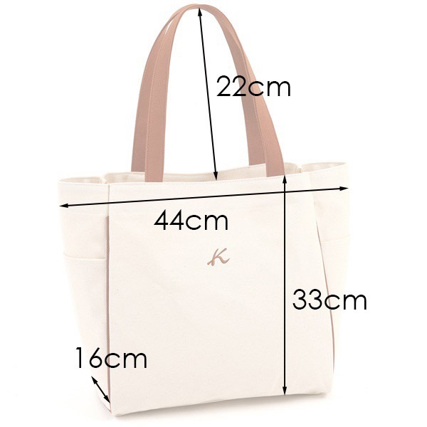 キャンバス素材のセミショルダーバッグ。シンプルなデザインに、Kマーク刺繍がワンポイント。内側には大きめの吊りポケットが付いているので、鍵やスマホなど小物の収納に便利。吊りポケットは目隠しフラップにもなり、間口を広げて使いたいときに中身が見えにくく安心です。外側にはサイドポケット2つ、背面側にも2つと収納スペースも充実。A4バインダーやペットボトルもしっかり収まるので、普段使いはもちろん、お仕事や習い事など、幅広いシーンにおすすめです。