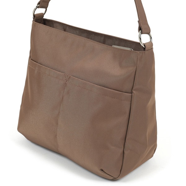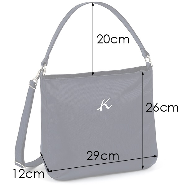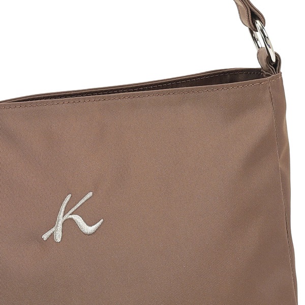丈夫なポリエステル生地を使用した2wayセミショルダーバッグ。中央のK刺繍がワンポイントのシンプルなデザインです。着脱できるショルダーベルトが付属し、斜め掛けでもお使いいただけます。軽さや収納ポケットなど、使い勝手のよさにだわりました。口元はファスナーでしっかり閉じられるので、中身が見えず安心。背面にはポケットが2つ付いており、スマホやハンカチ、パスケースなどサッと取り出したい小物の収納に便利です。