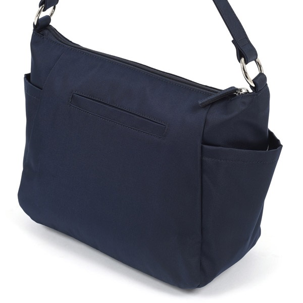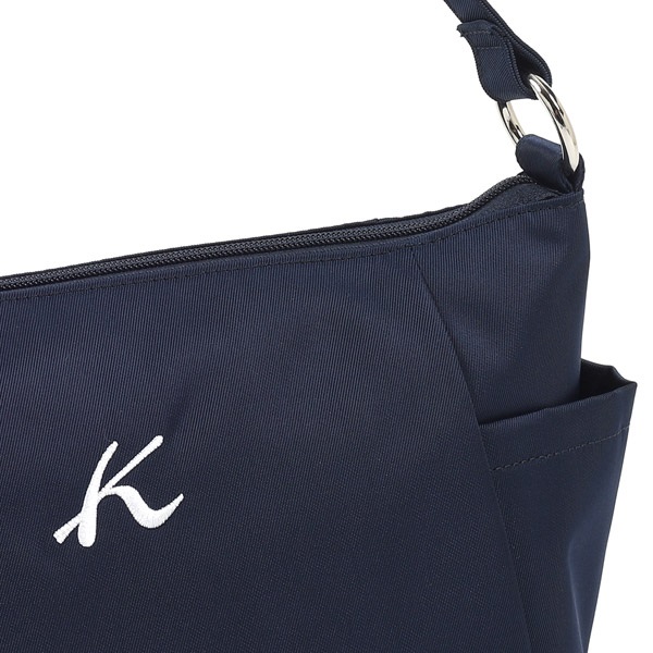 丈夫なポリエステル生地を使用した横型2wayセミショルダーバッグ。中央のK刺繍がワンポイントのシンプルなデザインです。着脱できるショルダーベルトが付属し、斜め掛けでもお使いいただけます。軽さや収納ポケットなど、使い勝手のよさにだわりました。口元はファスナーでしっかり閉じられるので、中身が見えず安心。サイドポケットのほか、背面にもポケットが付いており、スマホやハンカチ、パスケースなどサッと取り出したい小物の収納に便利です。