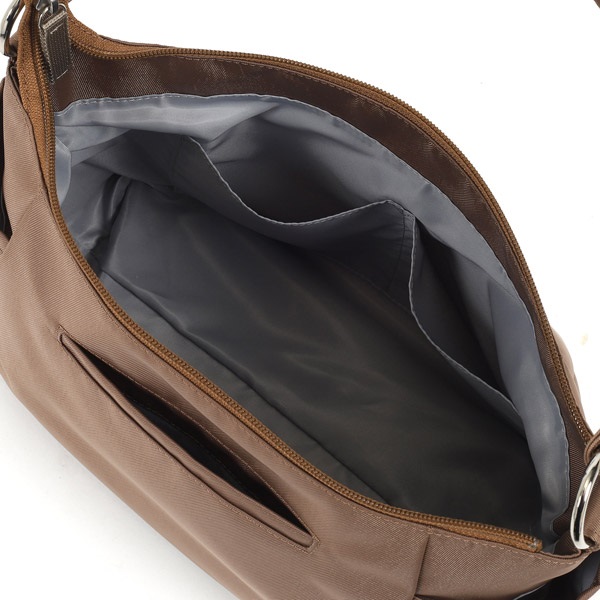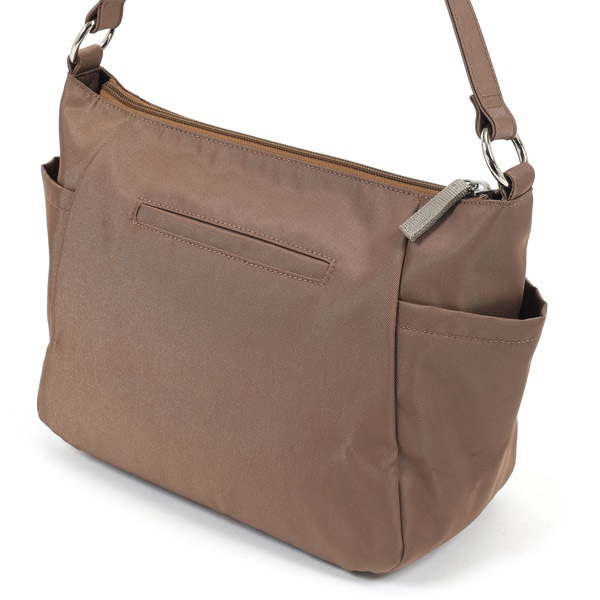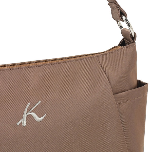 丈夫なポリエステル生地を使用した横型2wayセミショルダーバッグ。中央のK刺繍がワンポイントのシンプルなデザインです。着脱できるショルダーベルトが付属し、斜め掛けでもお使いいただけます。軽さや収納ポケットなど、使い勝手のよさにだわりました。口元はファスナーでしっかり閉じられるので、中身が見えず安心。サイドポケットのほか、背面にもポケットが付いており、スマホやハンカチ、パスケースなどサッと取り出したい小物の収納に便利です。