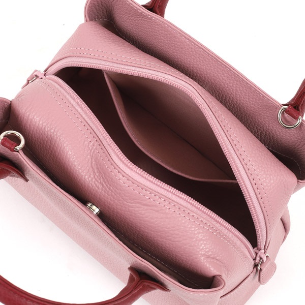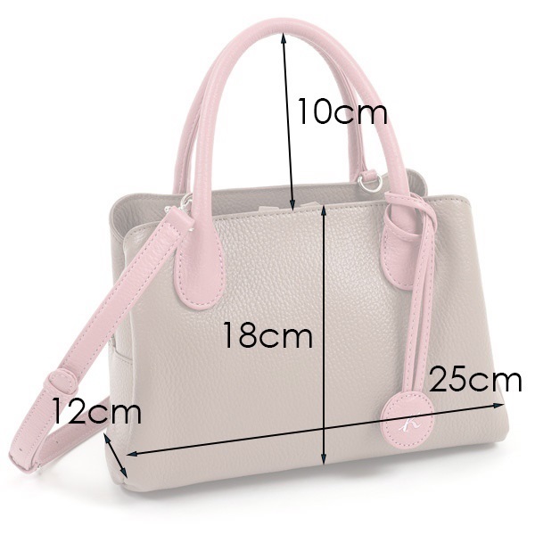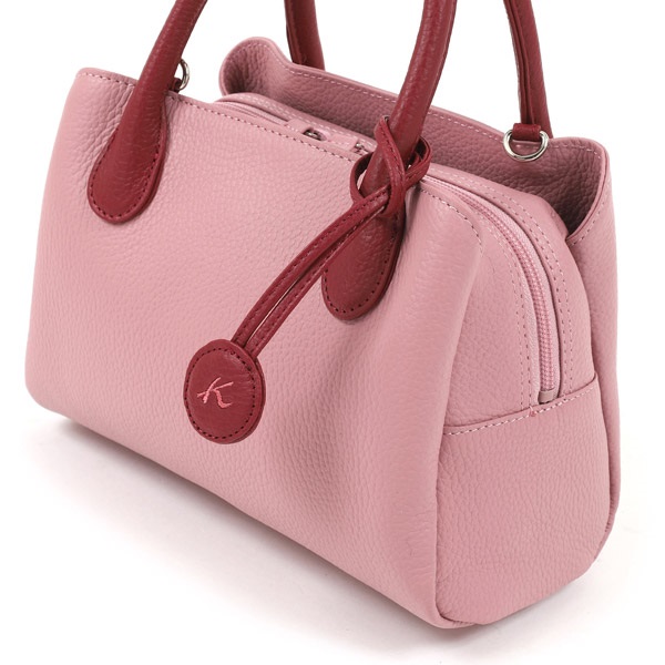 Kマーク入りのタグがワンポイントの2wayハンドバッグ。着脱できるショルダーベルトが付いています。マチが広く口開きが大きいので、物の出し入れがスムーズ。メイン収納の両脇があおりポケットになっており、出し入れの多いスマホやパスケース、ハンカチなどの収納に便利です。