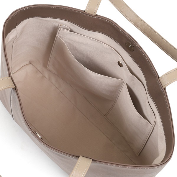 持ち手から底マチ部分にかけて入ったラインがポイントのセミショルダーバッグ。すっきりとしたシンプルなデザインで、サイドのマチ部分に、キタムラロゴ刺繍が入ったパッチをあしらいました。A4サイズ対応でメインバッグとしてはもちろん、サブバッグとしてもおすすめ。口元はマグネットで閉じられます。