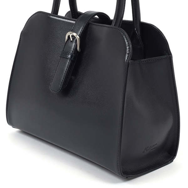 バックルベルトがポイントのハンドバッグ。ツヤのある牛革を使用し、クラシカルで上品な印象に仕上げました。マチが広く、長財布やポーチもゆったり入ります。バックルベルトはマグネット付きで開閉もスマート。サイドのマチにさり気なくKitamuraロゴの素押しが入っています。きちんと感のあるスクエアフォルムで、オケージョンスタイルにもおすすめです。