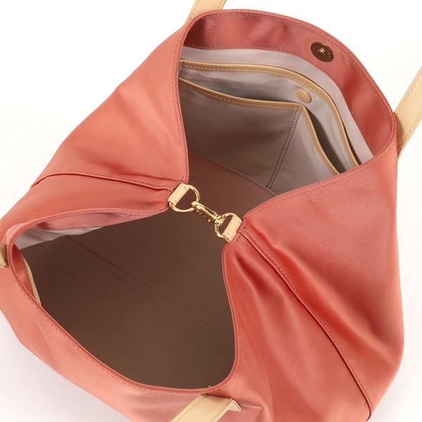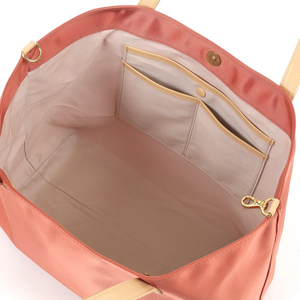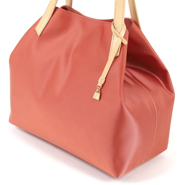 軽さが魅力のセミショルダーバッグ。弱撥水のナイロン素材を使用しており、軽い水濡れも安心です。持ち手には牛革を使用し、きちんと感をプラスしました。Kマーク入りバッグ型チャームが、きらりと光るワンポイント。両サイドのマチを内側に織り込んでフォルムを変え、コンパクトに持てるのも嬉しいポイントです。A4クリアファイル対応サイズで、通勤にもおすすめです。