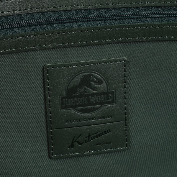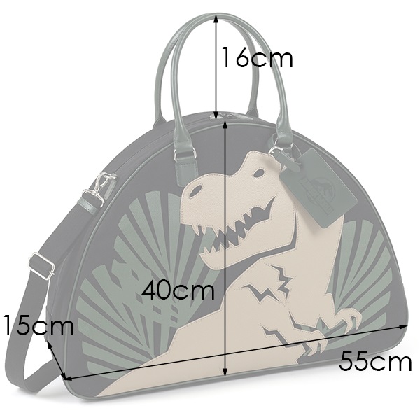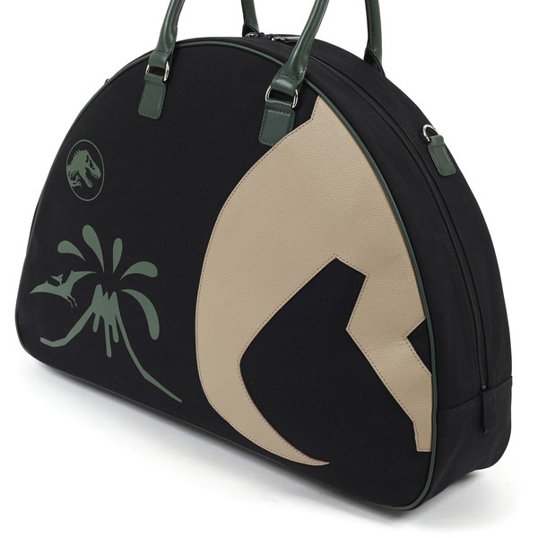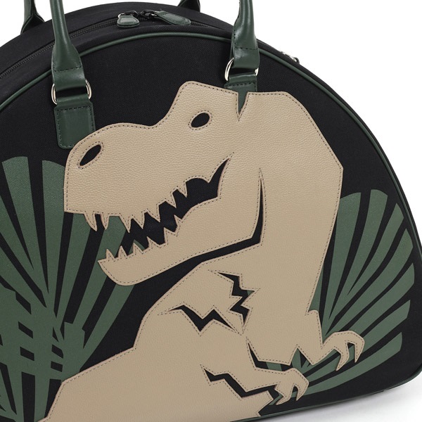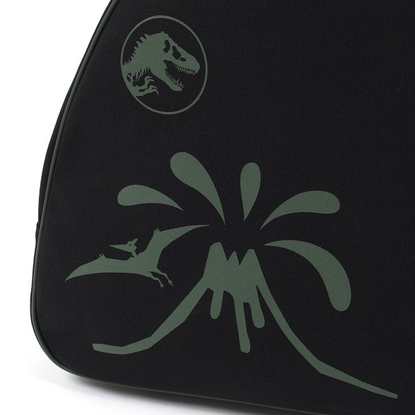 T-レックスのシルエットが印象的な2wayボストンバッグ。大きな版面を活かし、バッグ全体で恐竜の迫力を表現しました。恐竜部分は型押しの牛革パッチでゴツゴツとした皮膚の質感を演出。背面側には恐竜の尻尾と噴火した火山、飛び回る翼竜の姿を描いています。「JURASSIC WORLD」ロゴが素押しされた牛革製のネームタグが付属。お出かけがより楽しくなること間違いなしのアイテムです。