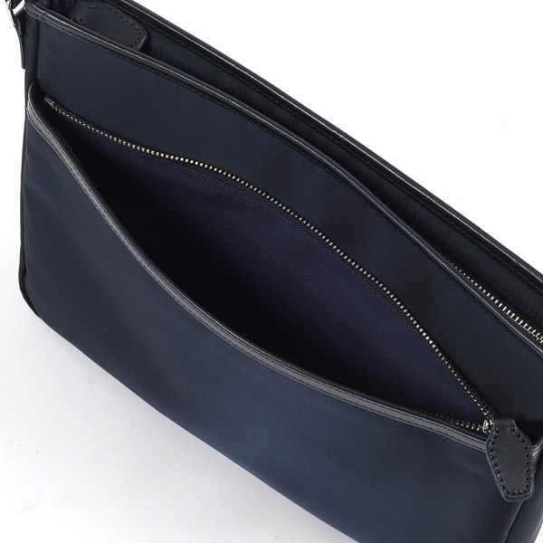 牛革×ナイロンコンビのショルダーバッグ。カジュアルなナイロン素材に、牛革が洗練された上品さをプラスしています。A4ファイルがしっかり収まるサイズ感でありながら、見た目はコンパクトで大きすぎない印象。文庫本やペットボトルなど、少し荷物が多い方でもしっかりと収納できます。11インチのiPadも入るため、通勤やちょっとしたお仕事バッグとしても活躍します。さらに、前面・背面どちらも表として使えるリバーシブルデザイン。気分やコーディネートに合わせて、異なる表情が楽しめます。
