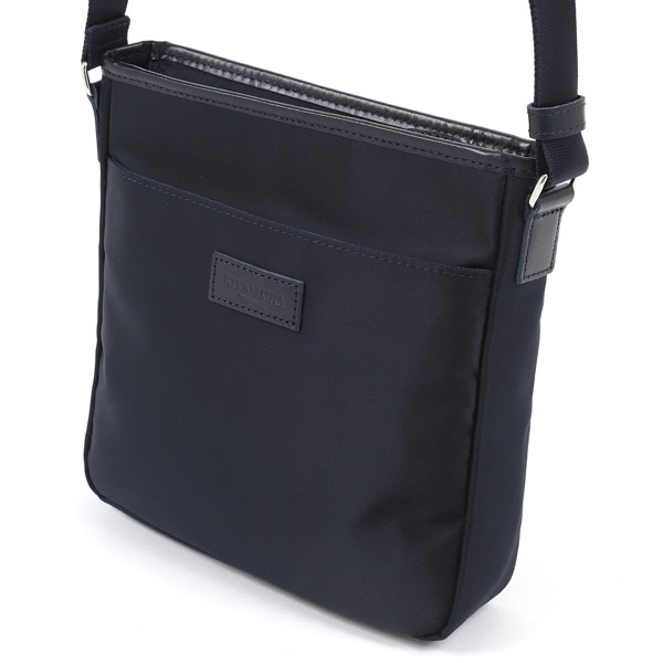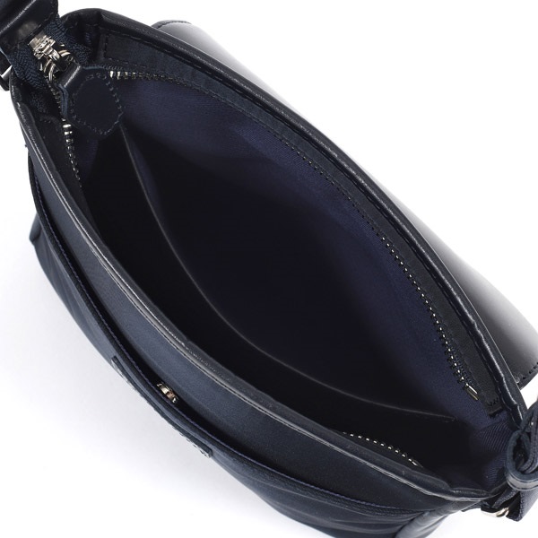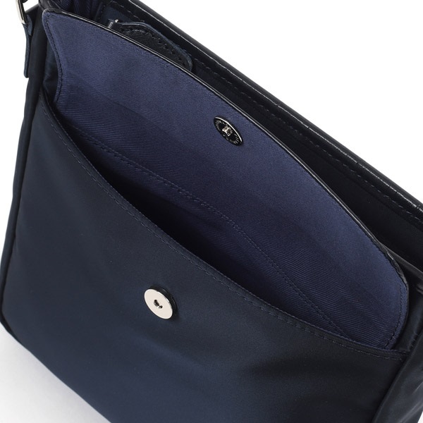 牛革×ナイロンコンビのショルダーバッグ。カジュアルなナイロン素材に、牛革が洗練された上品さをプラスしています。ナイロンをメイン素材にすることで、軽い仕上がり。長時間の使用でも肩が疲れにくいため、アクティブなお出かけにぴったりです。裏面の外ポケットは、スマホやパスケースなど、必要な時にすぐに取り出したい小物の収納に便利です。