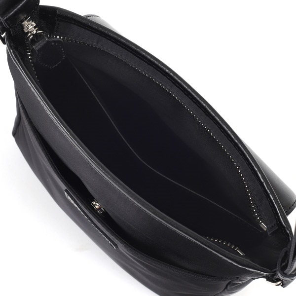 牛革×ナイロンコンビのショルダーバッグ。カジュアルなナイロン素材に、牛革が洗練された上品さをプラスしています。ナイロンをメイン素材にすることで、軽い仕上がり。長時間の使用でも肩が疲れにくいため、アクティブなお出かけにぴったりです。裏面の外ポケットは、スマホやパスケースなど、必要な時にすぐに取り出したい小物の収納に便利です。