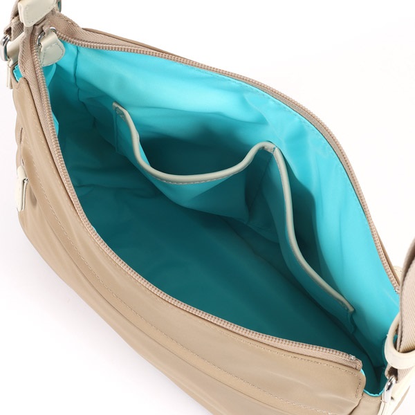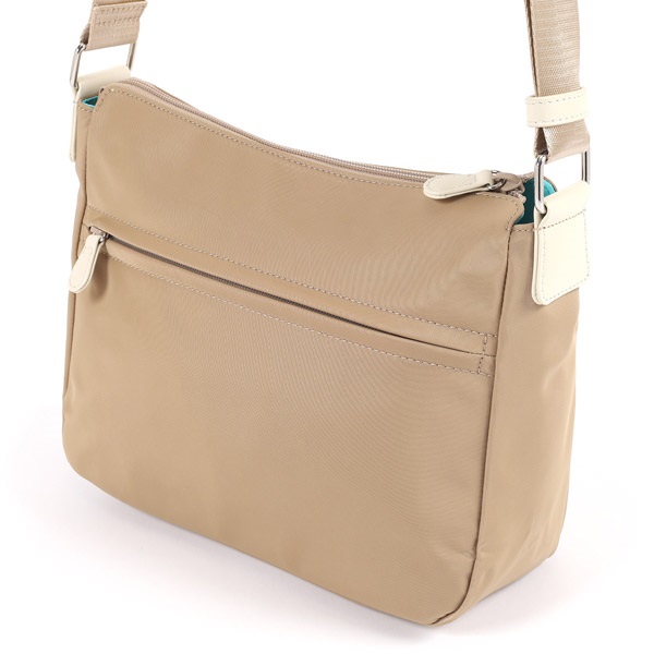 機能性にこだわったナイロン素材のショルダーバッグ。斜め掛けにして持ち歩きしやすいサイズ感と軽さが特徴です。前面・背面両方にファスナーポケット付き。ファスナー引き手部分には牛革を使用し、デザインにメリハリを出しました。