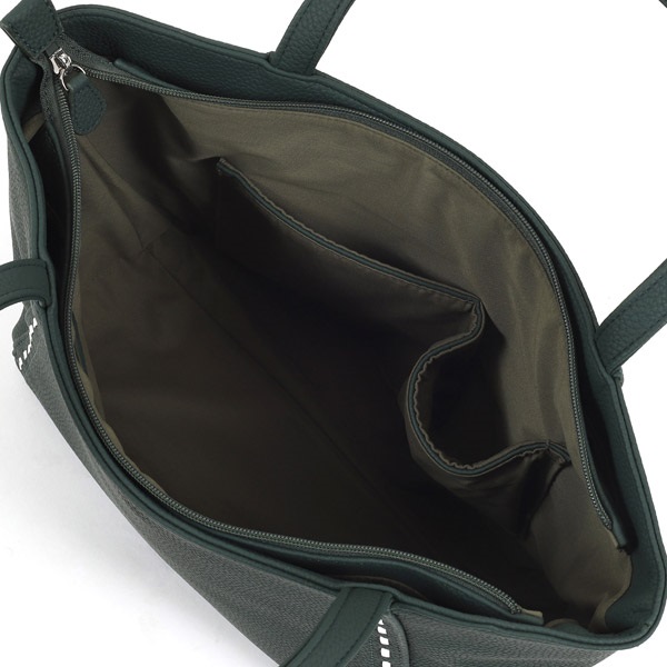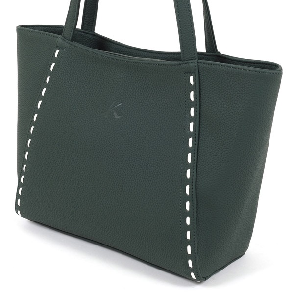 ハンドステッチ風デザインがポイントのセミショルダーバッグ。中央には素押しでKマークをあしらいました。付属のショルダーバッグは、ベルトを外せばインナーポーチとしてもお使いいただけます。本体はA4クリアファイルが入るサイズ感で、通勤・通学にもおすすめ。合皮素材を使用しているので汚れや水濡れに強く、軽量なのも魅力。やわらかな素材ですが、底鋲付きで自立するのも嬉しいポイントです。同じデザインで小さいタイプ(Z-0628)もございます。