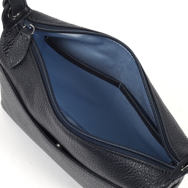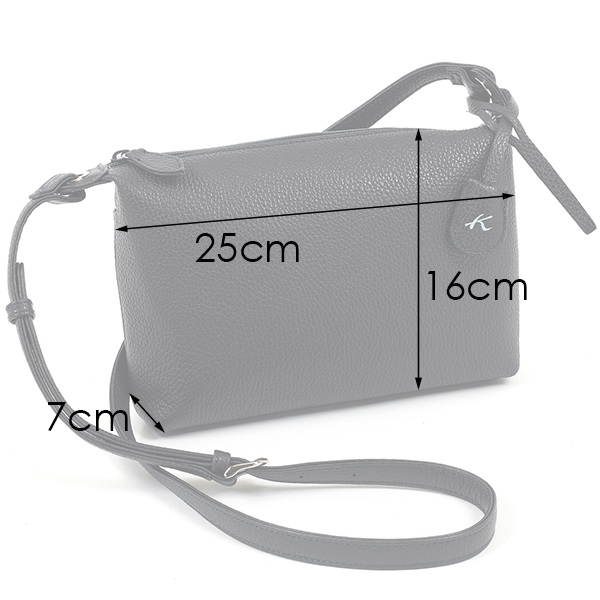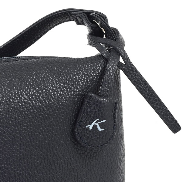 軽くてやわらかいシュリンクレザーのショルダーバッグ。長財布が横向きに入るサイズ感で、スマホショルダーより少し収納力のあるバッグをお探しの方におすすめです。Kマーク刺繍の入ったチャーム風キーリングは取り外し可能。内装ポケットに付いているDカンにも取り付けられます。背面側には、スマホやハンカチなど取り出す機会の多い小物の収納に便利な外ポケットが付いています。